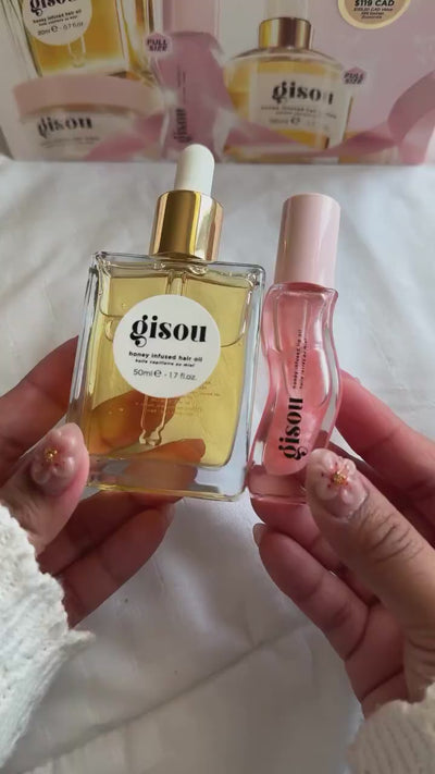 This exclusive set features two of Gisou’s most loved hair glow essentials — perfectly sized for travel, touch-ups, and daily shine boosts.