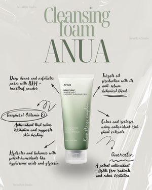 The ANUA Heartleaf Succinic Moisture Cleansing Foam is a soothing, low-pH facial cleanser designed to remove impurities, excess oil, and makeup while maintaining the skin’s natural moisture balance. Formulated with Heartleaf Extract, Succinic Acid, and botanical hydrating agents, this cleanser calms irritation, strengthens the skin barrier, and leaves the skin soft, smooth, and refreshed 🌿✨