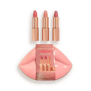 The Charlotte’s Iconic Hollywood Mini Lip Trio is designed to give you three universally flattering shades that suit every mood, occasion, and skin tone. These minis are perfect for experimenting with iconic colors while enjoying the same premium formula Charlotte Tilbury is famous for.