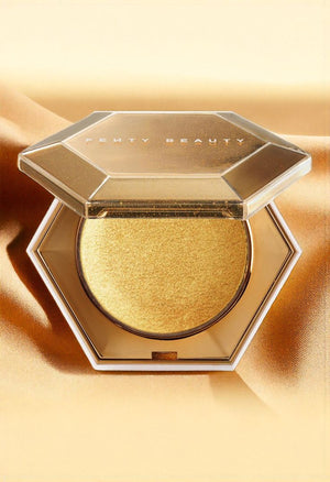 Unleash pure, high-impact brilliance with Fenty Beauty’s Diamond Bomb in Trophy Wife, a show-stopping gold highlighter infused with ultra-fine diamond shimmer. This iconic formula delivers a dazzling, wet-look glow that melts seamlessly into the skin for an all-over, multidimensional shine.