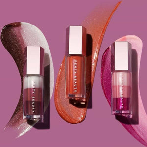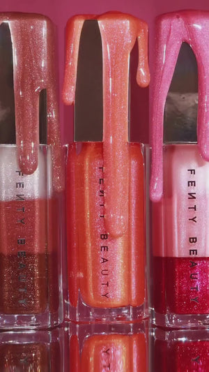 Each gloss glides on smoothly with a non-sticky, cushiony texture that instantly enhances lips with mirror-like shine and a hint of nourishing hydration. Whether worn alone or layered over lipstick, these glosses give you that signature Fenty glow in just one swipe.