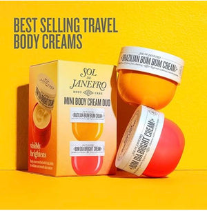 Experience iconic Brazilian body care in one irresistible set with the Sol de Janeiro Mini Body Cream Duo. This indulgent duo brings together two of Sol de Janeiro’s best-selling body creams, designed to hydrate, firm, smooth, and visibly brighten the skin while leaving behind the brand’s signature, addictive scent.